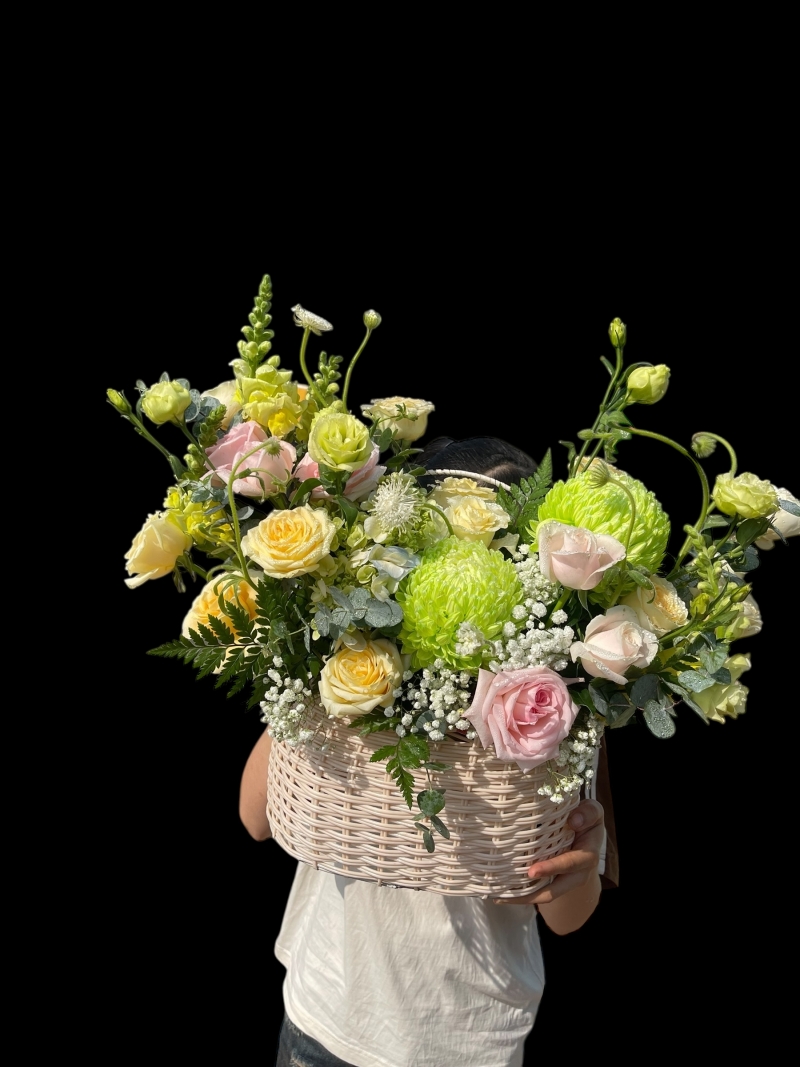 Giỏ hoa tone xanh